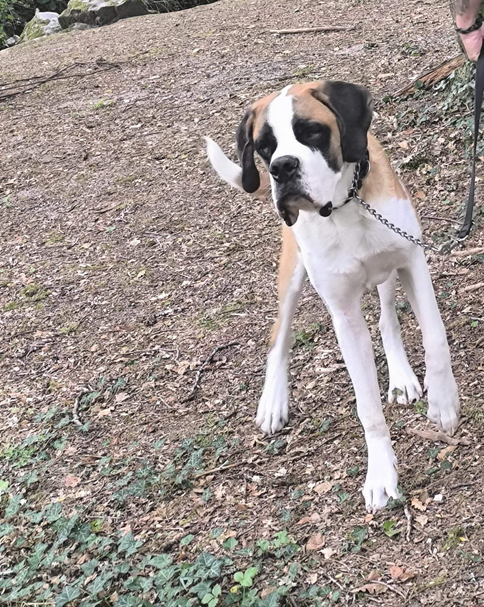 Education: pulls a little on a leash, but he is young and fiery